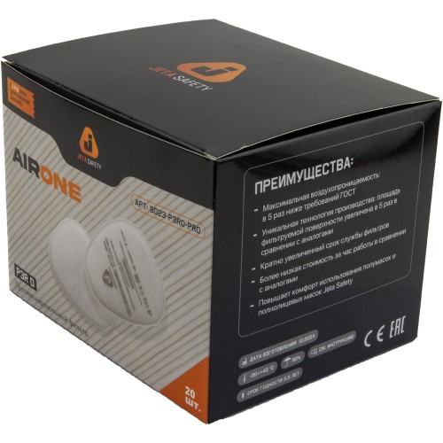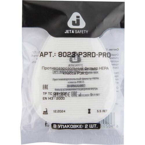 • Противоаэрозольный предфильтр Jeta Safety класса P2R 8023-P3 благодаря технологии очистки воздуха HEPA (AirOne) обеспечивает максимальную эффективность фильтрации и комфорт дыхания.